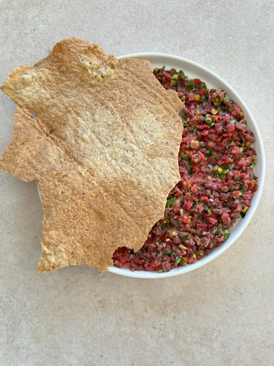 ניתן להגיש בצלחת את הטרטר ועל את הקרקר